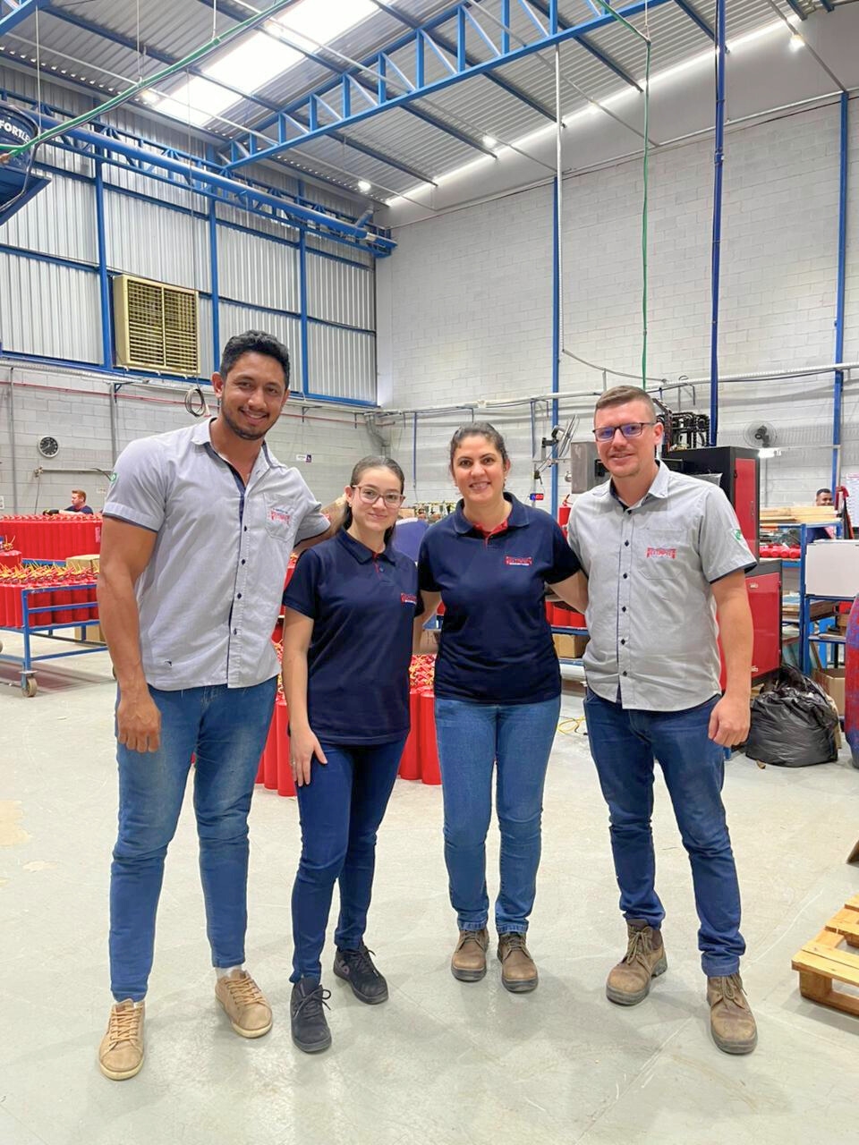 Foto esquerda para direita – Time da Qualidade: Jean (Inspetor da qualidade), Thalice (SAC), Joice (Gerente da qualidade) e Jeferson (Inspetor da qualidade).